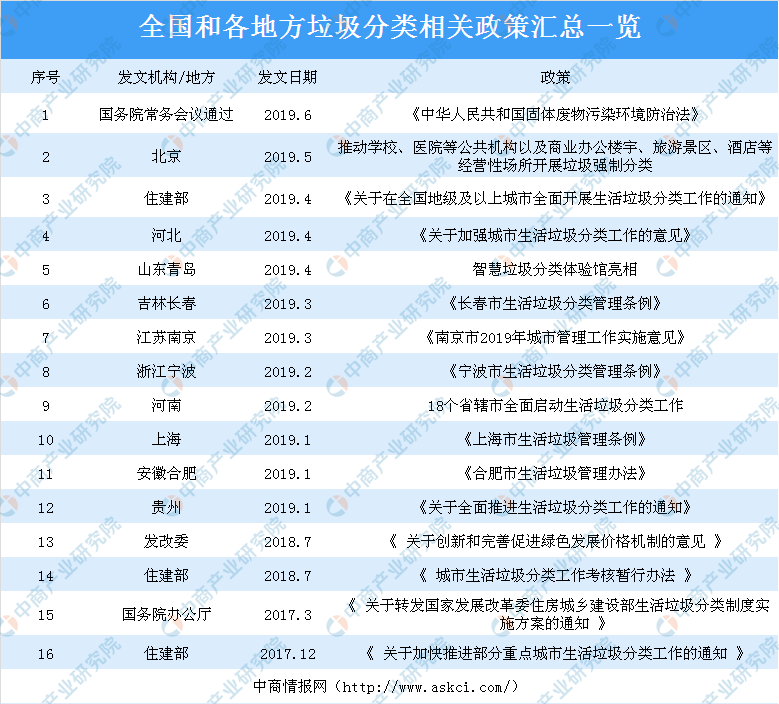 自2015年9月,中共中央、國務院印發(fā)《生態(tài)文明提質(zhì)改革總體方案》并提出加快建立垃圾強制分類制度以來,國家領(lǐng)導始終高度重視垃圾分類制度的健全和推廣。2016年底的中央財經(jīng)領(lǐng)導小組會議,再到日前的重要指示,習近平對垃圾分類工作的重視是該項工作持續(xù)推進的重要助力。國家層面明確方向,地方層面細化實施,垃圾分類政策不斷加碼 。